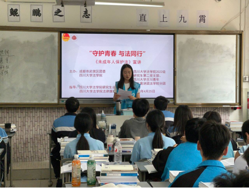 4月25日,我校道桥工程系与共青团武侯区委、四川大学法学院联合开展“守护青春·与法同行”未成年人保护法宣讲活动。